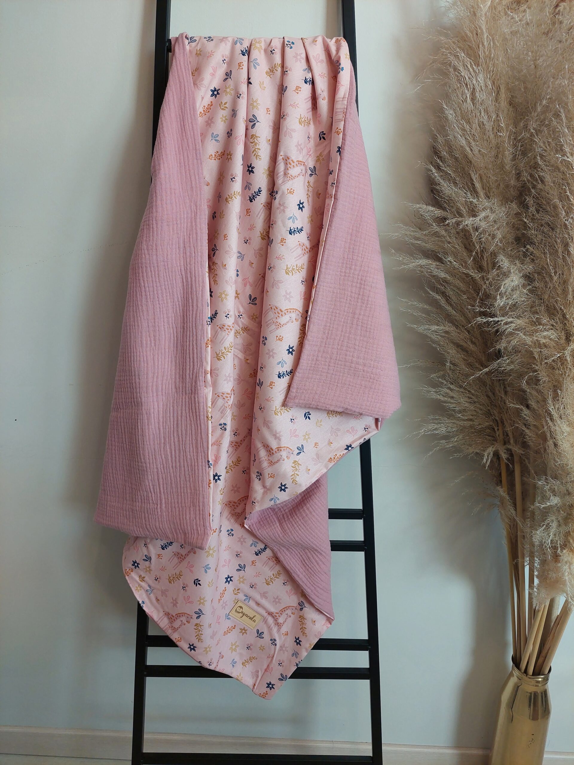 • 70*90 cm-es babatakaró, egyik oldala mintás pamutvászon, a másik pedig egyszínű duplagéz. 100% pamutból készült, jól szellőző takaró.