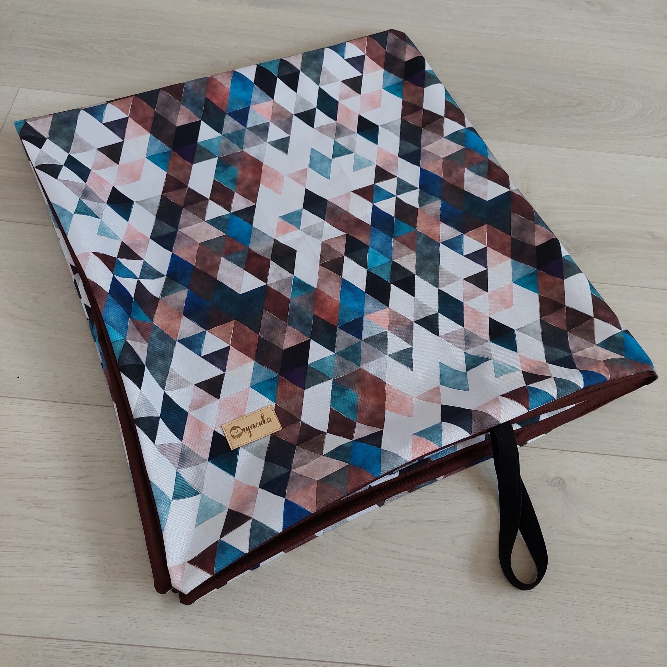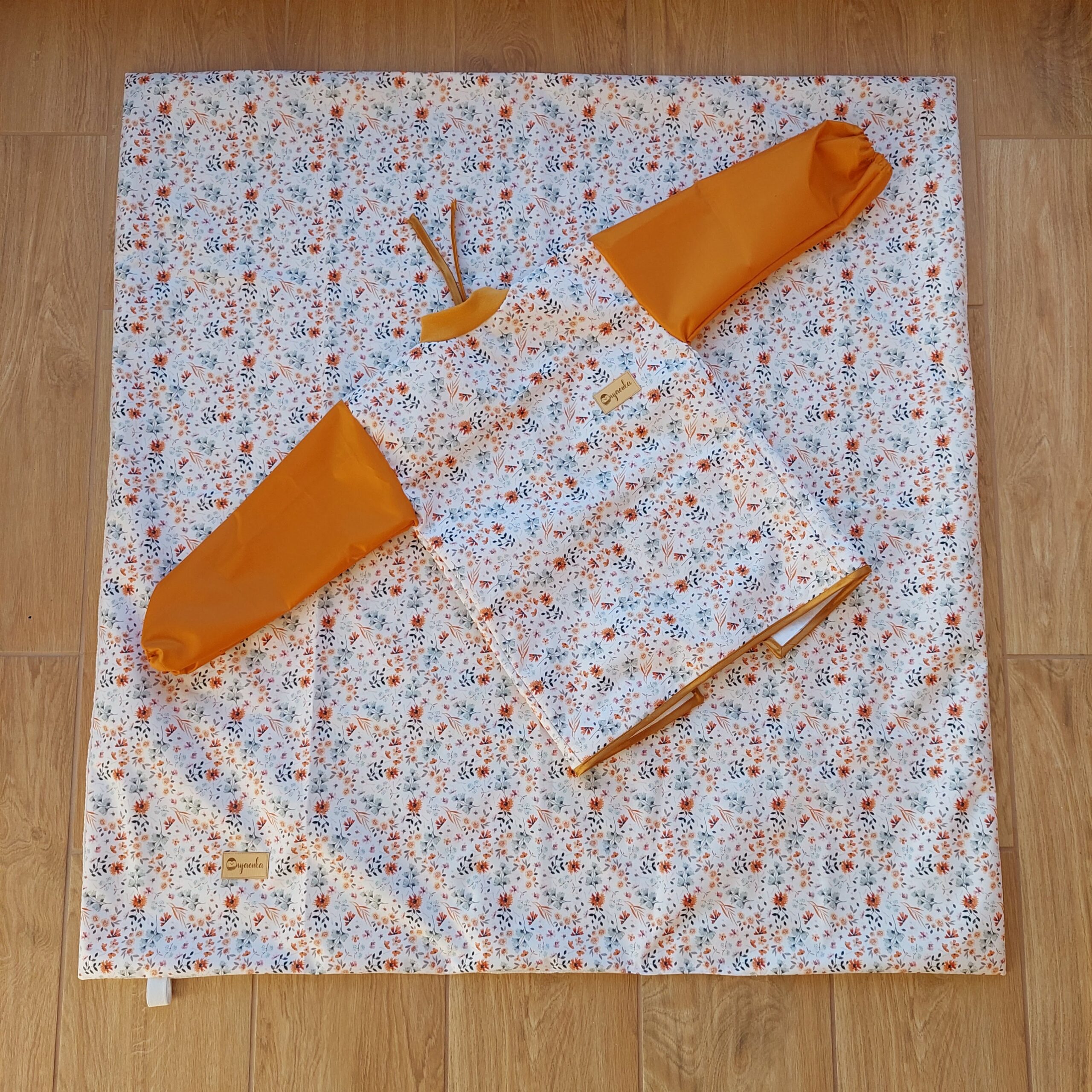 Az alátét 95*95 cm kiterítve, összehajtva rendkívül kis helyet foglal, egy gumipánttal összefogható, és utazáshoz, vendégségbe, étterembe is elvihető.