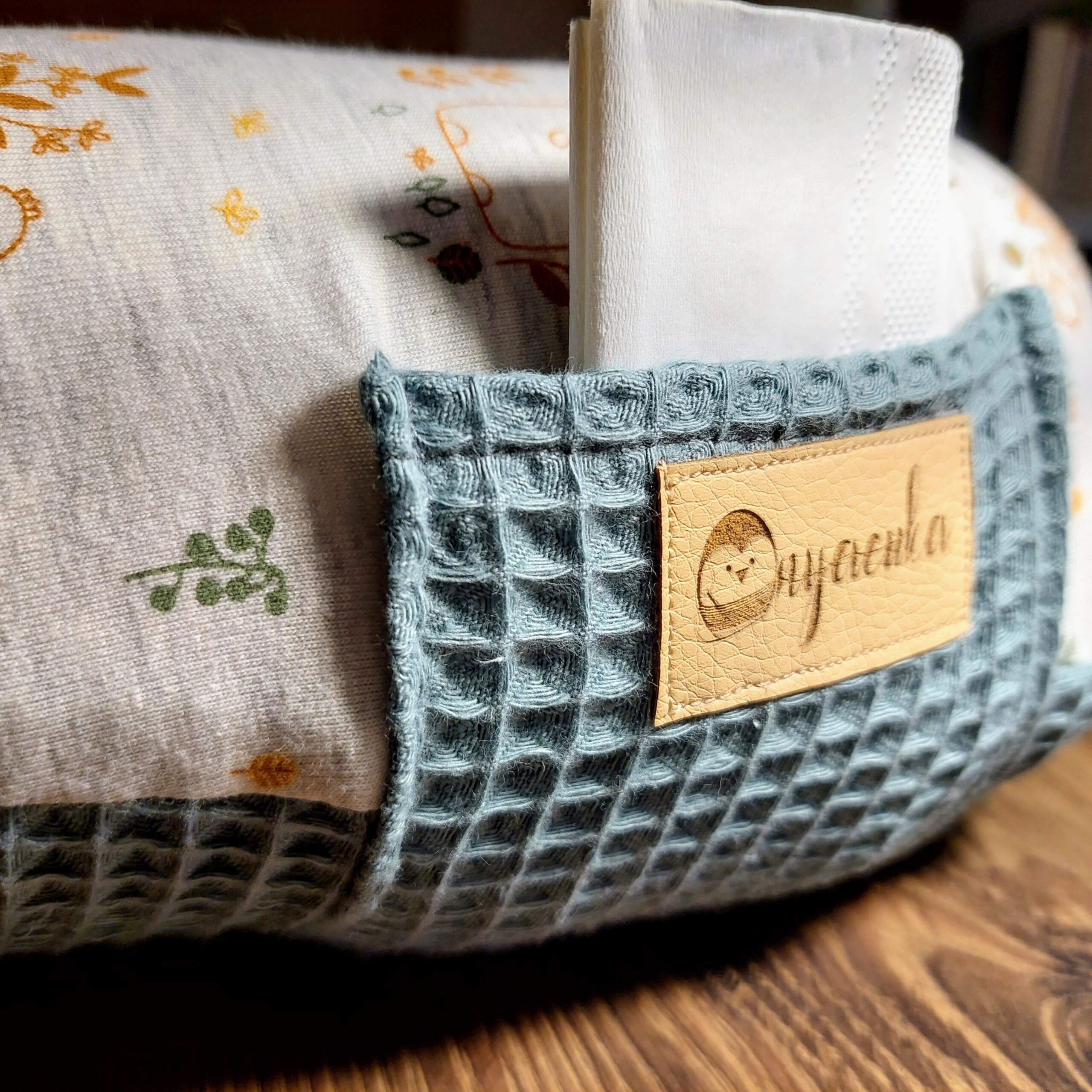 Az Anyacuka kismamapárnának rugalmas pamutanyagból készült a huzata, egy kis zsebbel az oldalán, hogy zsebkendőt, cumisüveget, vagy olyan apróságot lehessen beletenni amire szükség van gyermekünk táplálása közben.