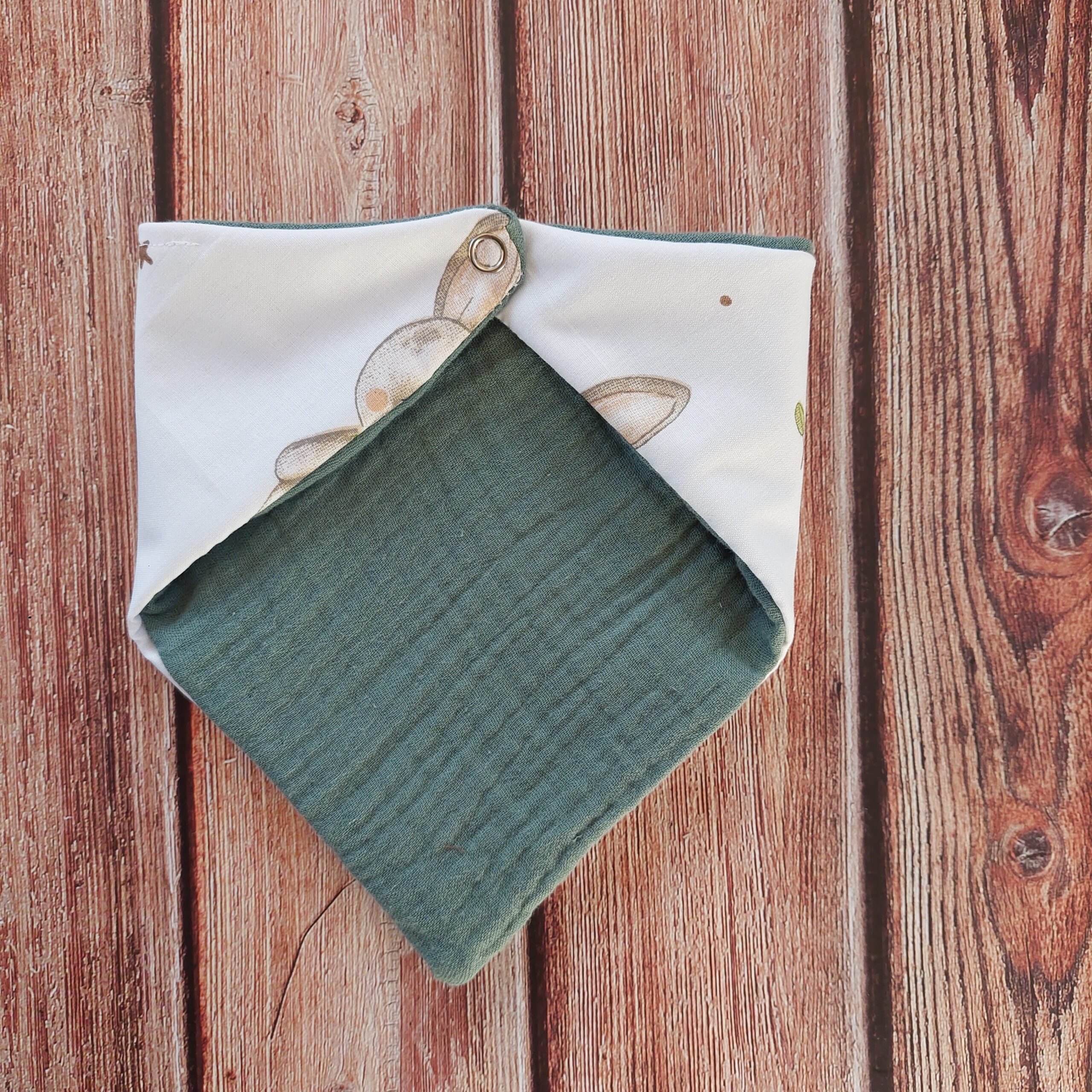 Az Anyacuka nyálkendők pamutvászon és duplagéz kombinációjából készülnek, és minden esetben közrefognak egy vízhatlan PUL réteget ami megakadályozza, hogy a ruha átázzon a kendő alatt.