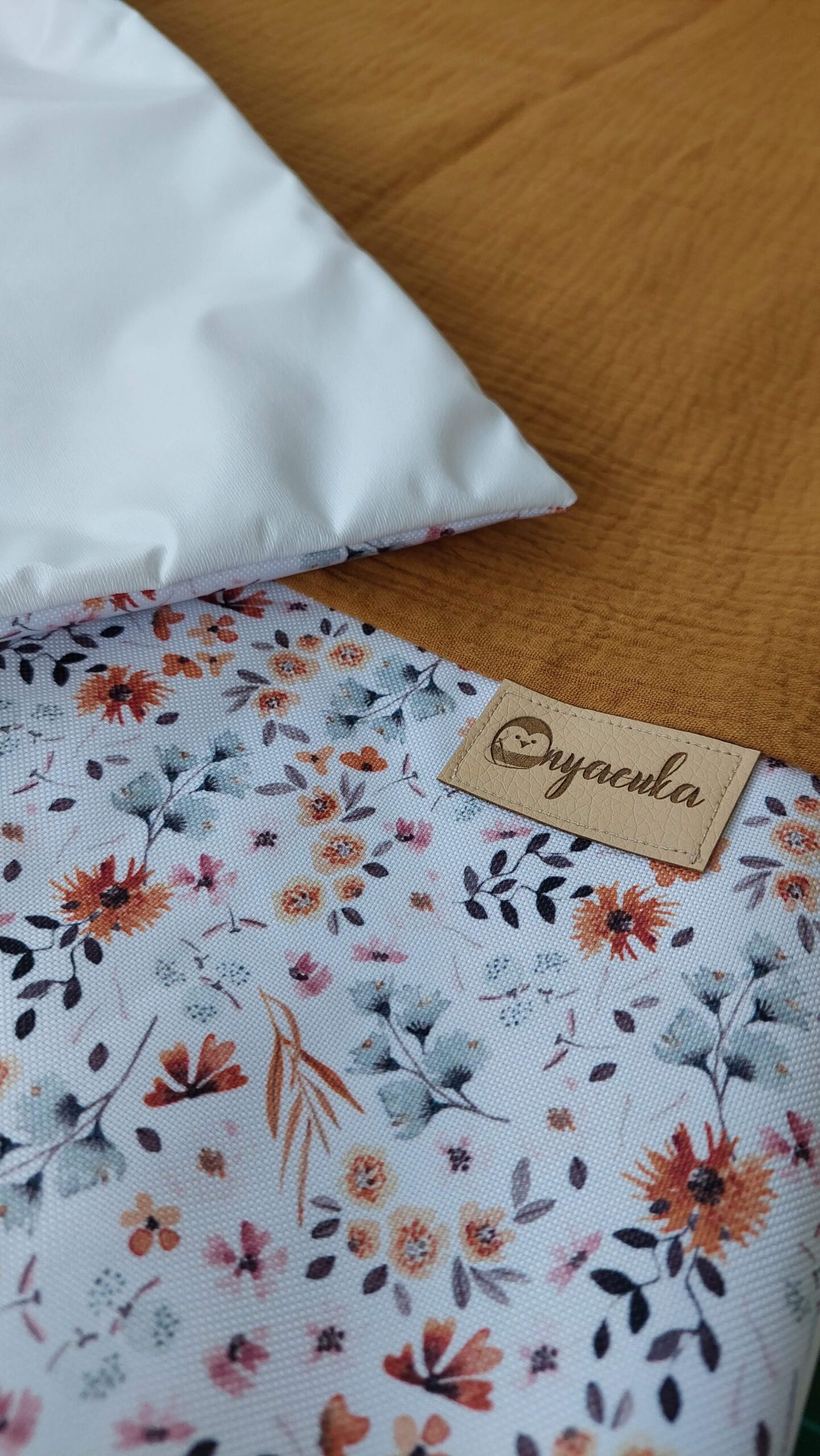 Az Anyacuka  pelenkázó alátét egyik oldala 100% pamutvászon, a másik pedig PUL anyag, ami jó légáteresztő képességű, és teljesen vízhatlan.