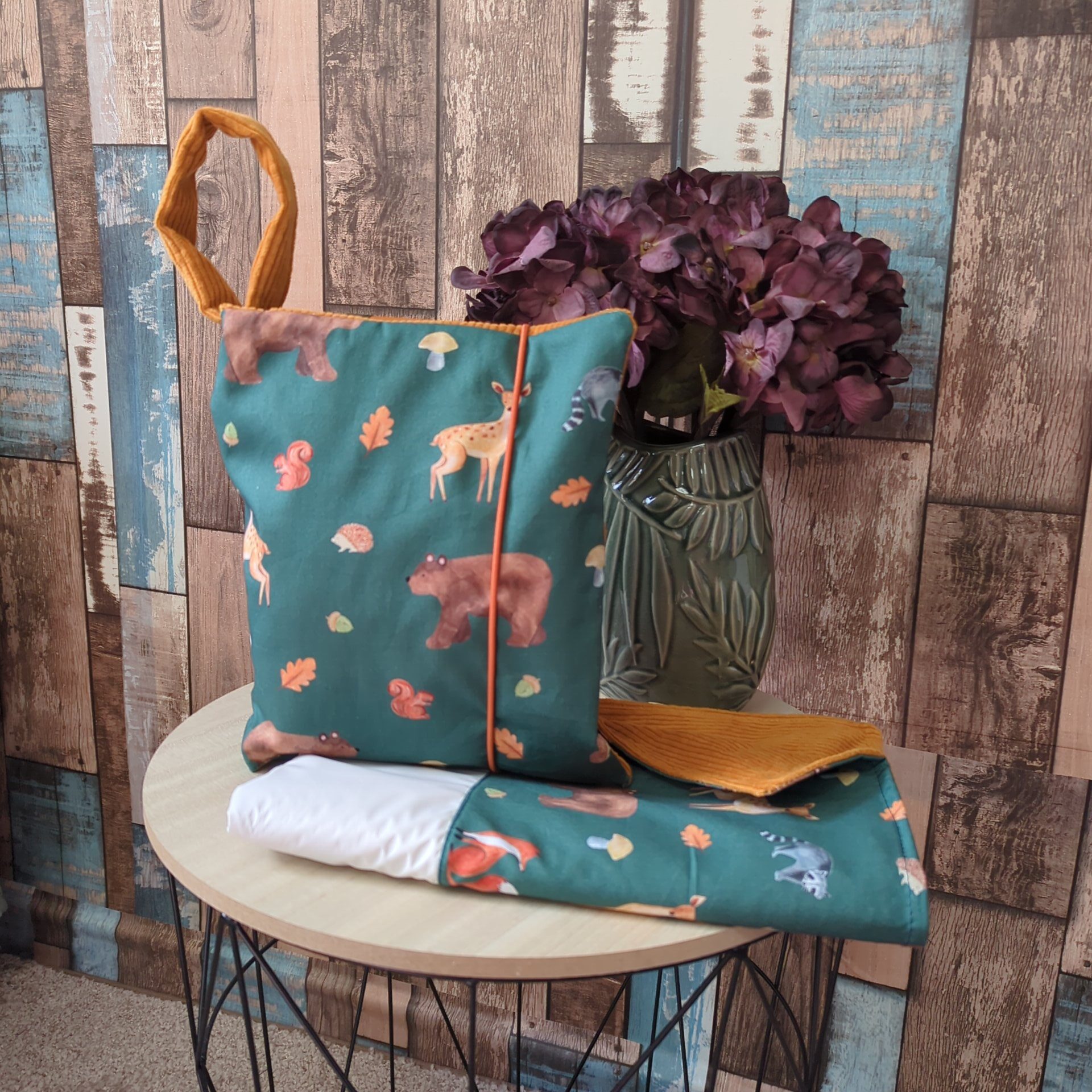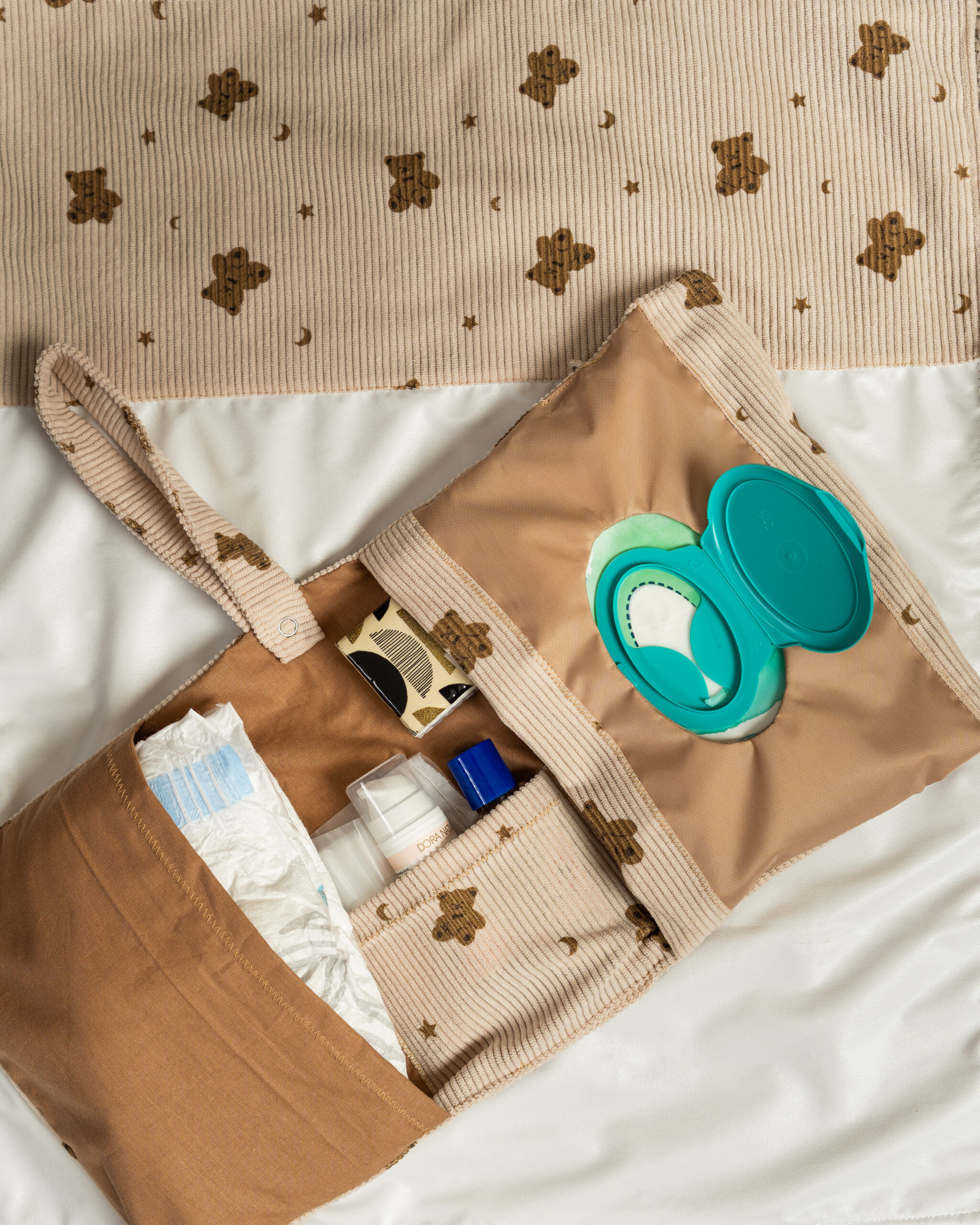 Tartozik hozzá egy vízhatlan ~40*60 cm-es pelenkázó alátét is, hogy bárhol kényelmesen le tudd fektetni a babádat.